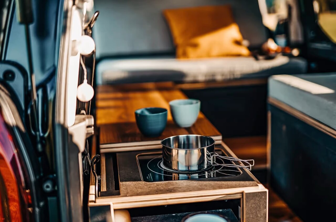پکیج One با تمرکز روی عقب Vanderer یک سالن غذاخوری/تختخواب قابل تبدیل چند ماژول با فضای آشپزخانه داخلی/خارج کشویی را با هم ترکیب کرده است. این ماژول شامل یک اجاق گاز القایی داخلی، قسمت آماده سازی بیرونی با اجاق گاز ثانویه، سینک، یخچال و میز ناهار خوری داخلی تاشو است.