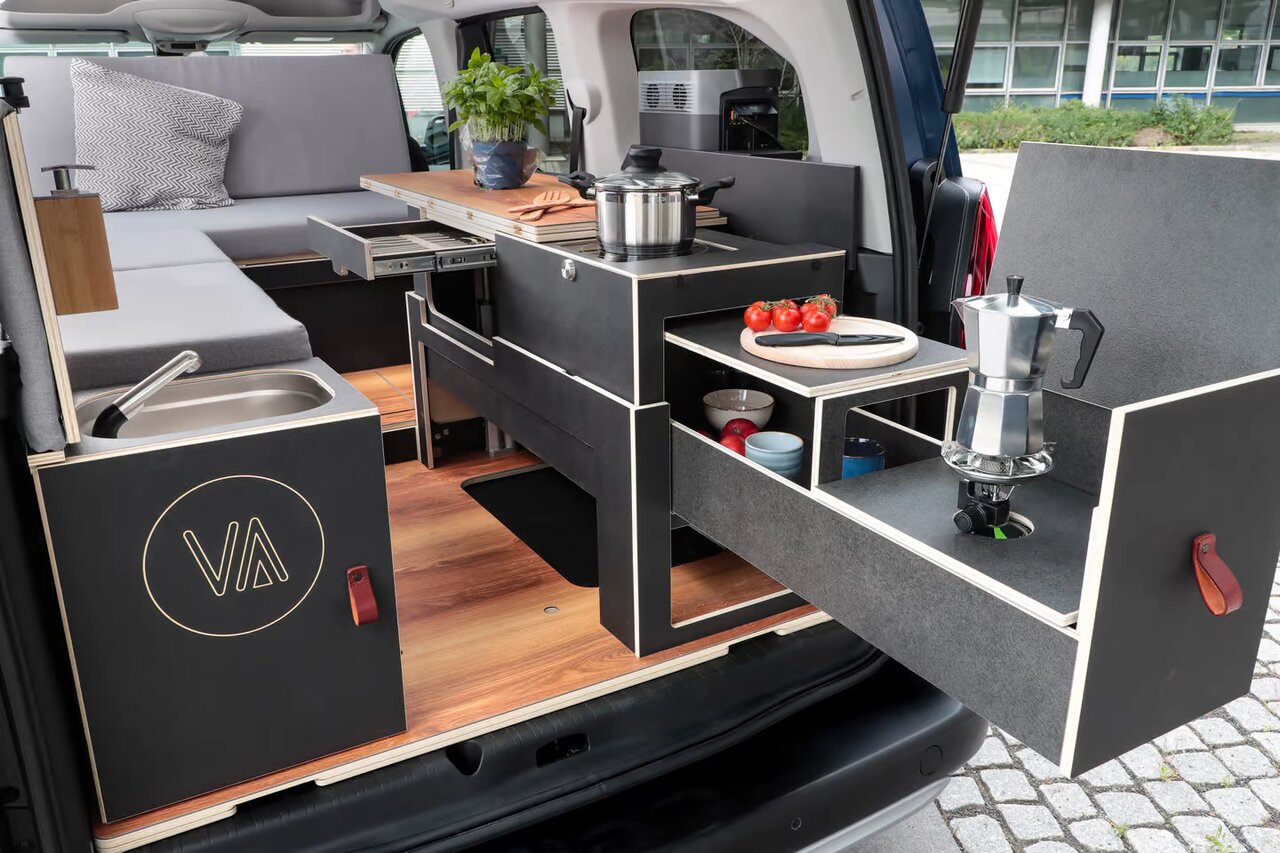 ماژولهای Vanderer به خوبی پشت ردیف دوم e-Berlingo XL فرو میروند و فضایی را برای حداکثر ۵ نفر در حال سواری فراهم میکنند.