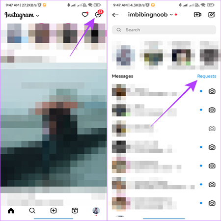 مرحله 1: برنامه اینستاگرام را باز کنید > روی نماد DM ضربه بزنید و Requests را انتخاب کنید.