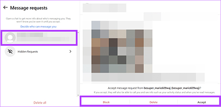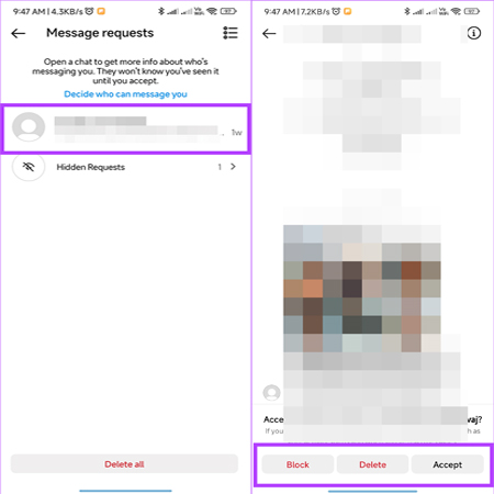 مرحله 3: از اینجا، بین Block، Delete و Accept یکی را انتخاب کنید.