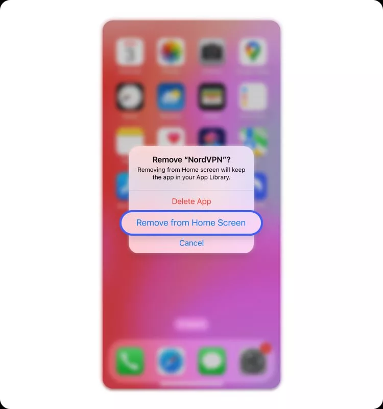 - در بخش بعدی نیز باید روی Remove from home screen ضربه بزنید.